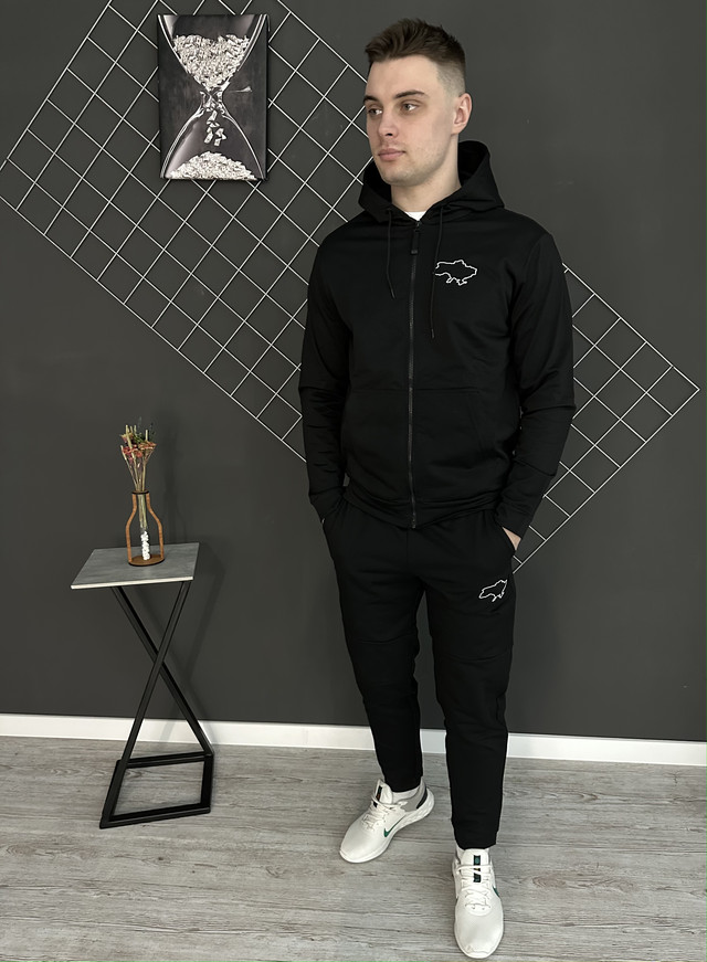 Чоловічий спортивний костюм демісезонний на змійці Мапа України чорний/ костюм на весну, осінь