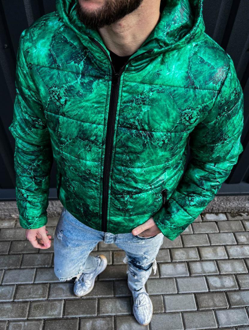 Чоловіча яскрава куртка зеленого кольору з принтом