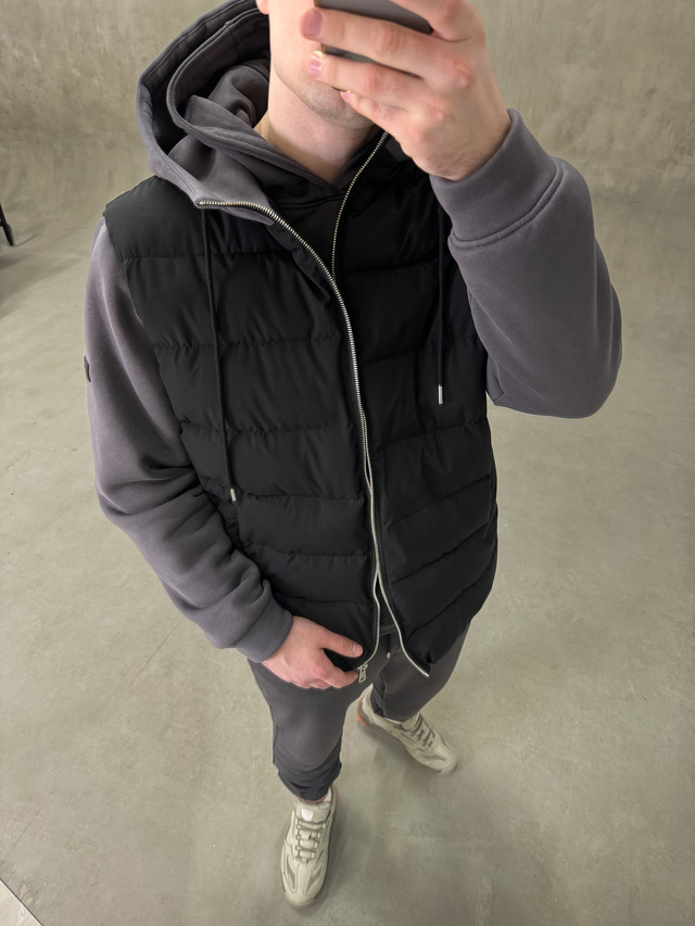 Демісезонна куртка з трикотажним рукавом чорна графіт на пуху весна осінь чорна Infinity курточка чоловіча